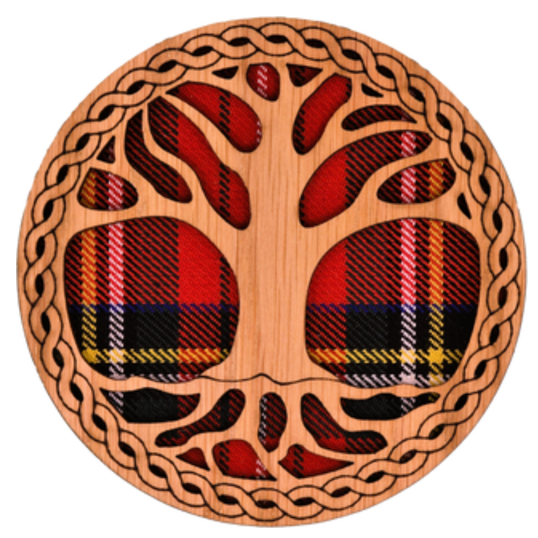 This round Tree of Life coaster is perfect for those who love Scottish keepsakes! Made from oak veneered wood and tartan background and finished with a felt back. Tartan pattern may vary from image shown. Due to the unique nature of each piece of wood, every product may have a different finish & appearance. Photographs are for reference only, final product may vary from image shown. With over 50 combined years experience in creating traditional handcrafted goods, from Tracey's kiltmaking days & Kev's time as a blacksmith and a passion for all things craft, we have developed our own range of uniquely crafted products.