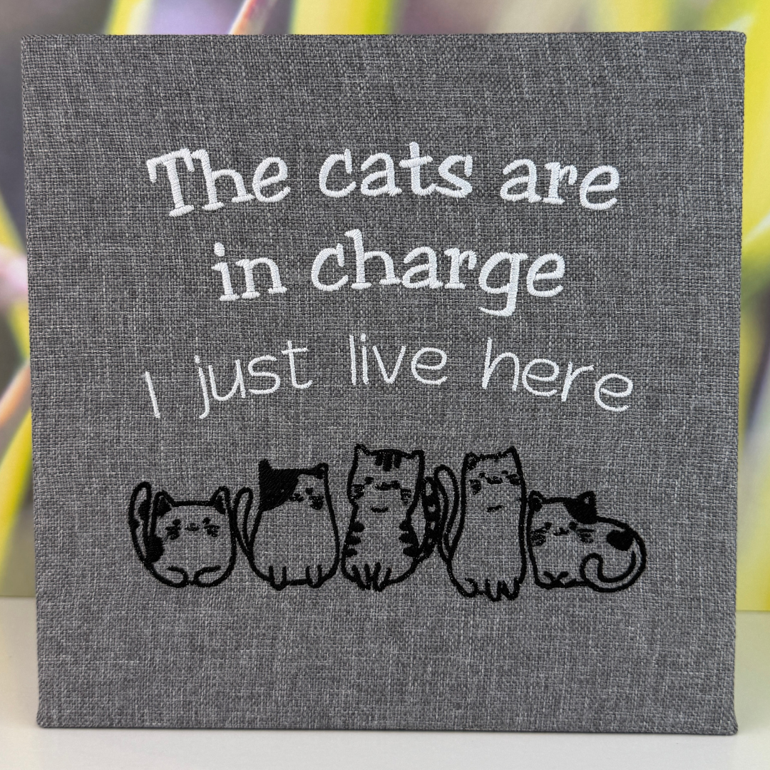 Cats are in charge embroidered canvas art, thoughtfully crafted on high-quality fabric for a timeless finish. Each piece features detailed stitching in vibrant thread, bringing the design to life with texture and movement.