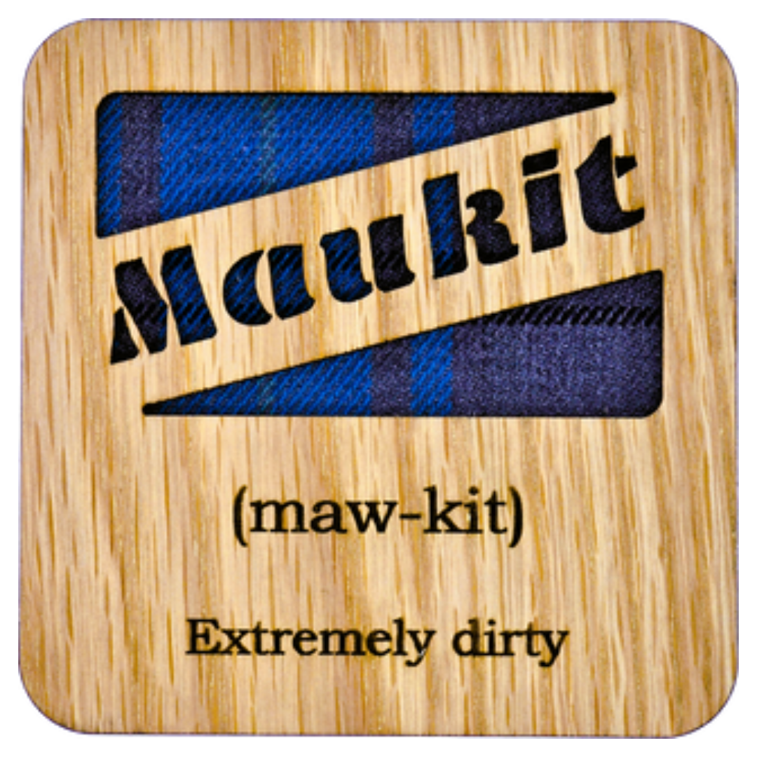 This fantastic tartan background square coaster featuring the Scots word "Maukit" is made from oak veneered wood. A unique Scottish themed gift translates oor braw Scottish dialect! All coasters are finished with a felt back. Due to the unique nature of each piece of wood, every product may have a different finish and appearance. With over 50 combined years experience in creating traditional handcrafted goods, from Tracey's kiltmaking days & Kev's time as a blacksmith and a passion for all things craft, we have developed our own range of uniquely crafted products.
