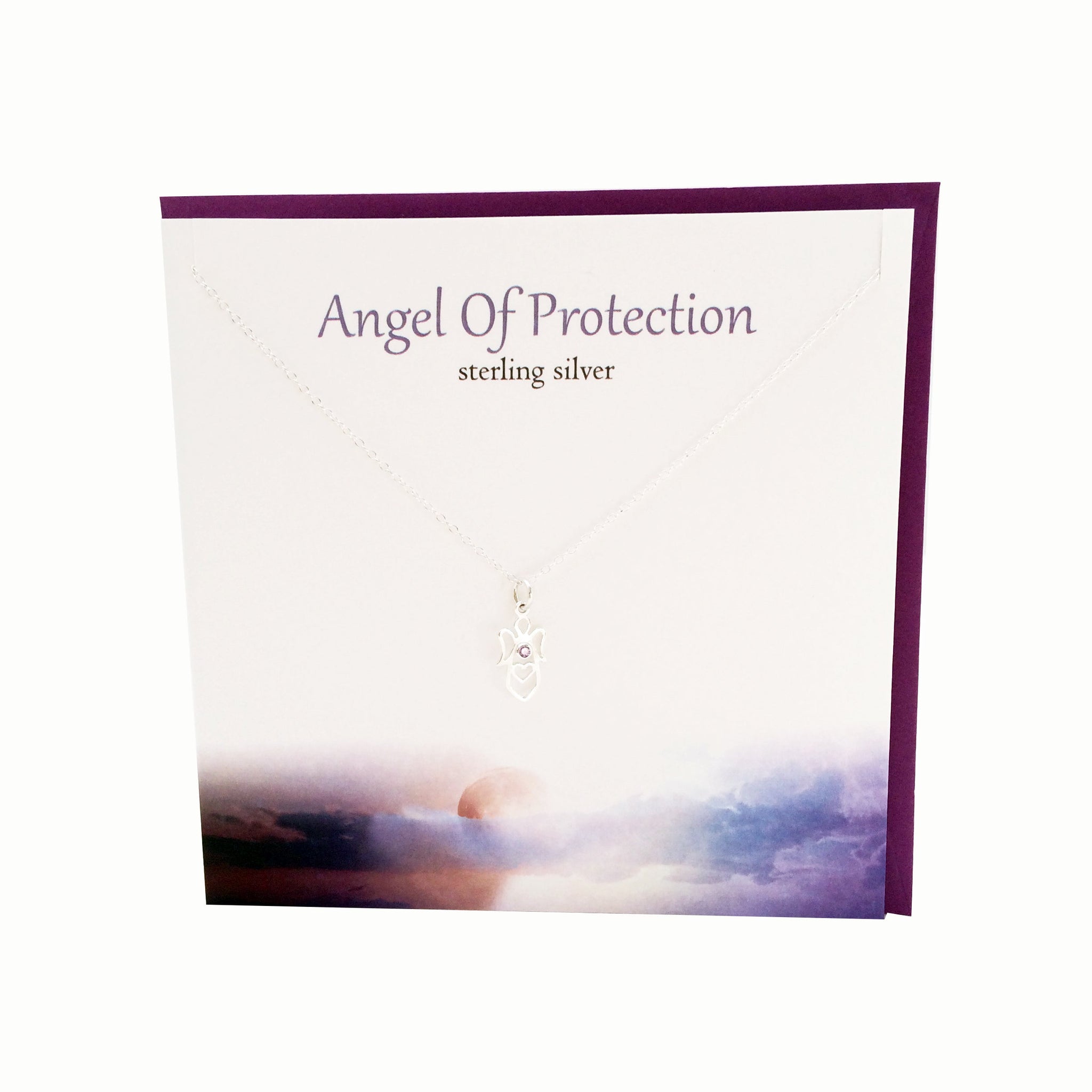 Feel protected by our Angel of protection silver pendant.Handmade jewellery greeting card. Designed in Scotland by The Silver Studio.